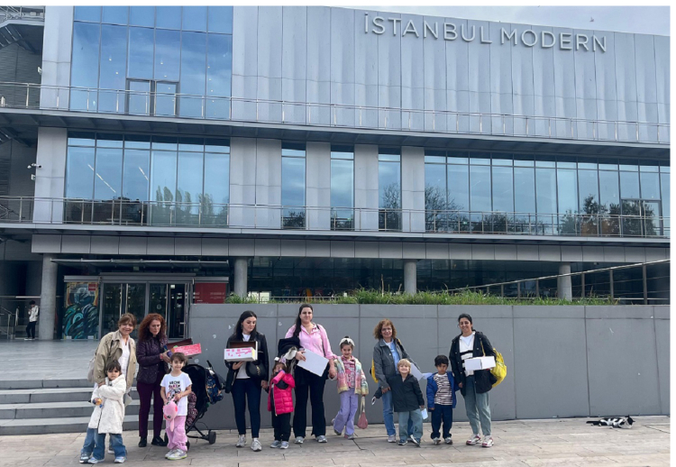 Çağdaş sanat ile izleyiciler arasında güçlü bağlar kurmak, sanat eğitiminde fırsat eşitliğini güçlendirmek amacıyla ücretsiz yapılan programa 4–6 yaş grubu çocuklar ve anneleri katıldı. İki aşamalı olarak planlanan programın ilk aşaması Maltepe Belediyesi Prof. Dr. Türkan Saylan Kültür Merkezi’ndeki Çocuk Kütüphanesi’nde önceki günlerde gerçekleşti. Müze nedir, ne işe yarar gibi temel kavramlar üzerine düşünmeyi sağlayan saha çalışmasının ardından katılımcılar kendi müze fikirlerini geliştirdi. Programın ikinci ayağında dün katılımcılar İstanbul Modern’i ziyaret etti. İstanbul Modern’in koleksiyon sergisini gezerek sanat yapıtlarıyla tanışan çocuklar ve anneleri müzenin atölyesinde kendi sanat üretimlerini gerçekleştirdi.