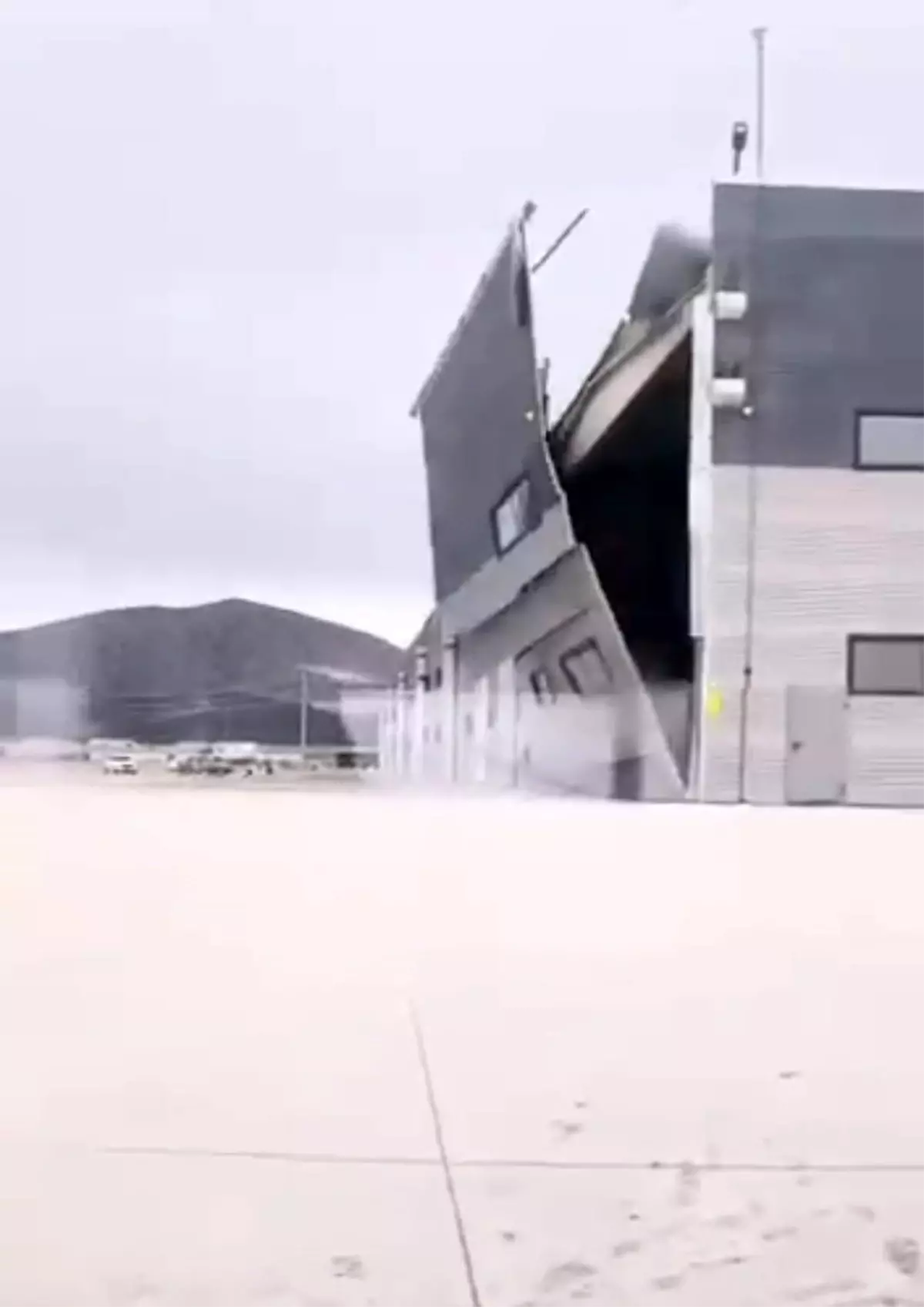 Altıntaş’ta rüzgar nedeniyle bir fabrikanın duvarı yıkıldı, can kaybı yok.